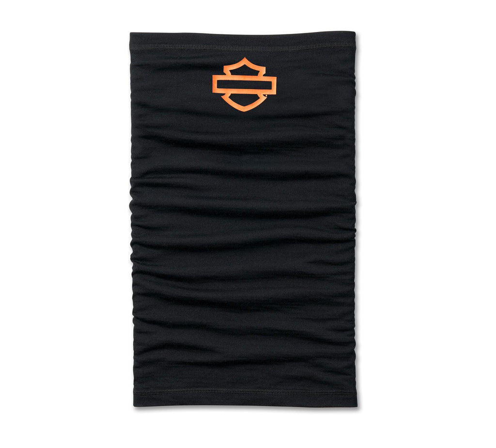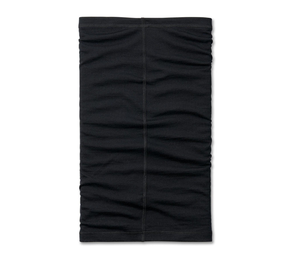 Add year-round comfort and a hit of H-D style with our Bar & Shield Merino Neck Gaiter. Made from Merino wool—a favorite outerwear fabric best known for its temperature-regulating properties (warm, breathable, and moisture-wicking). Its longer-length design tucks inside your jacket and collar to block wind, fits over your mouth and nose to repel dust and bugs, or slides over your head as a do-rag. Minimally branded for a versatile look.